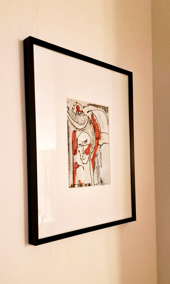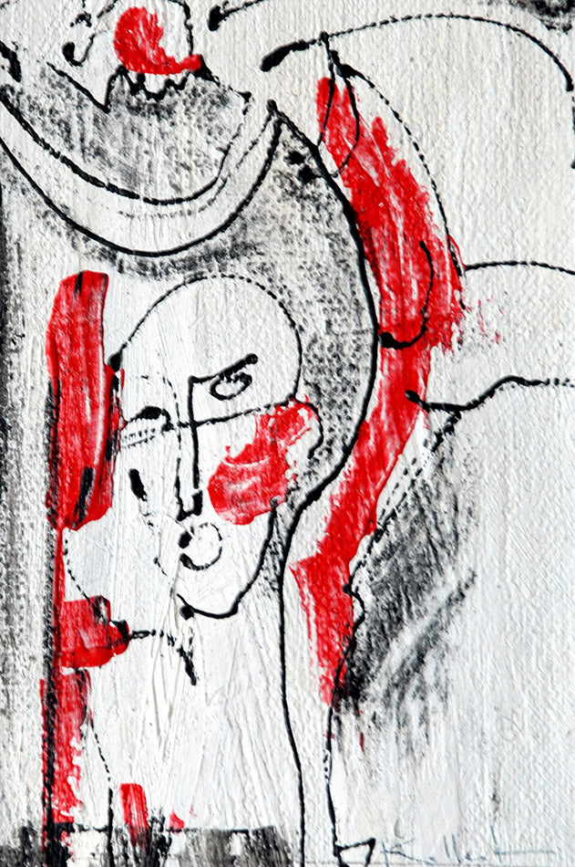 La double vue - dessin visages peinture traits noirs sur toile -passe partout 24x30cm