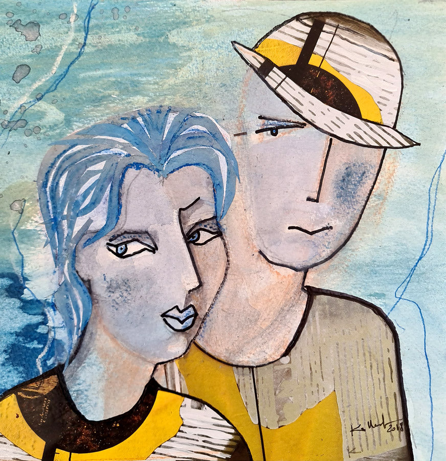 Concordance - portrait couple bleu et jaune - 20x20cm-cadre